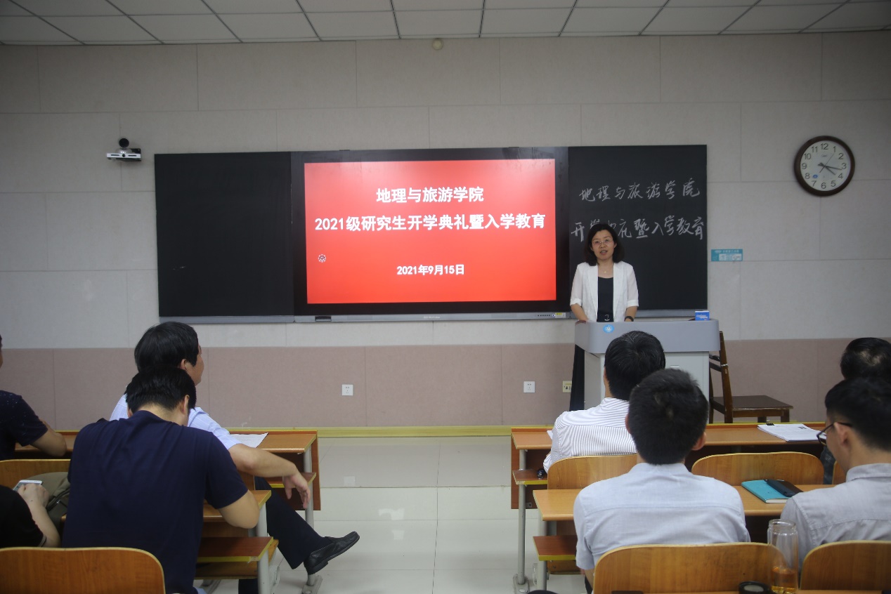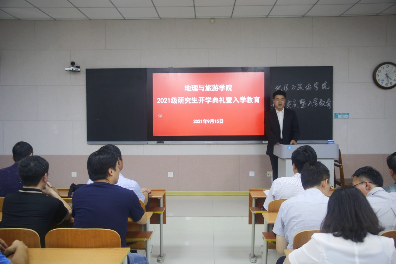 历史沿革、学科建设、教学成果、办学特色、师资力量、社会贡献等基本情况。张院长叮嘱同学们一定要围绕学院“一体两翼、三点四面”的学科发展背景,找准研究方向,树立培养工作能力、学好专业知识、塑造健康身体的三大目标。他强调,研究生要明确学习目标,培养自学意识、能力意识、创新意识、安全意识,树立科学的情感态度价值观,树立底线意识、纪律意识,爱惜学校和学院荣誉,期待同学们成长为一名优秀的地理学者、地理教育工作者。