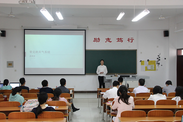 院长代合治,副院长王慧,自然地理教研室主任荆延德,人文地理教研室主任刘志刚,区域地理教研室主任刘坤,旅游地理教研室石峰。此次活动主要以模拟课堂形式,让大家更好的感受讲课的实蕴为目的,全面具体的展示讲课环节,了解自身的师能素质,参加比赛的同学根据自己的情况选定讲课内容,在有限的时间内利用课件讲课或者传统讲课,发挥自我,出色完成讲课。
