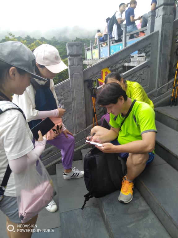 在黄山景区,在老师们的指导下,同学们通过观察法、问卷调查法了解黄山旅游客流活动规律,并对景区容量、门票等问题进行了调查分析,圆满完成了各项作业任务。在实习归来途中大巴车上,大家继续就有关专业问题展开积极讨论、踊跃发言。