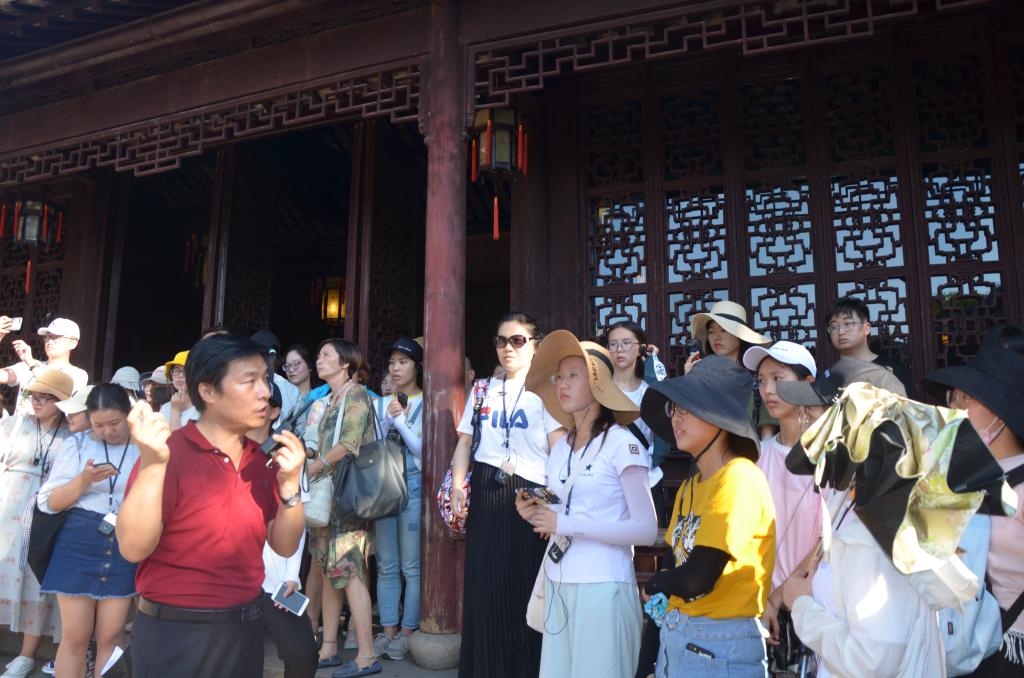 在苏州留园景区,同学们围绕留园的布局风格、构景手法、园区管理等问题开展了实地考察和访谈调查。在苏州盘门景区,在资料搜集和景区调研基础上,以小组为单位,大家认真讨论,踊跃发言,分析了不同层次旅游资源对旅游业的功能影响。