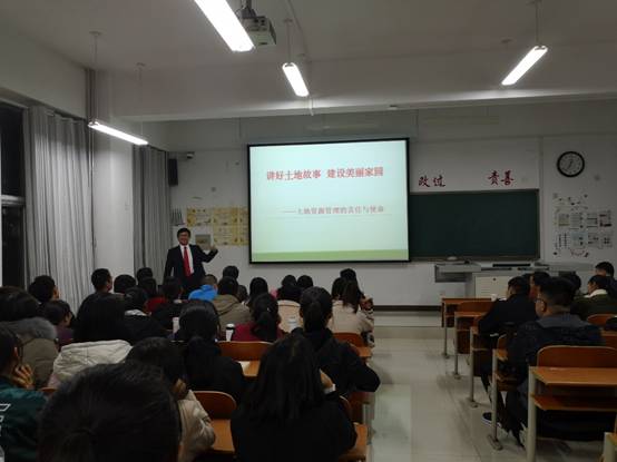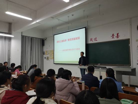 优秀的土地资源管理毕业学子为榜样,向同学们展示了专业的就业岗位、科研深造方向,让同学们看到了一个大有作为的土地管理专业,坚实的土地工作者在祖国及世界各地发光发热。张院长的讲解高屋建瓴又深入浅出,语重心长又诙谐幽默,引起了全体师生的激烈反响。通过本次会议,进一步加深了2018级新生对土地资源管理专业的认识,激发同学们专业探索的浓厚兴趣,明确土地资源管理专业人员的责任与使命。