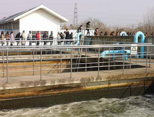 在污水处理厂,王厂长和吴科长首先详细介绍了污水处理的整个运作流程,然后分别带学生逐级参观讲解污水处理的每个具体工艺环节,从格栅池到沉砂池,从氧化沟到二沉池,从污泥浓缩池到污泥生物处理。通过听讲解、看工艺及现场交流,学生深刻感知了城市污水回用、污泥变废为宝的全过程。