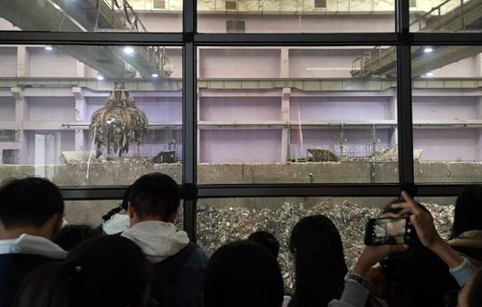 在垃圾焚烧发电厂,讲解人员从生活垃圾分类收集开始,依次带学生参观了垃圾预处理、垃圾焚烧、烟气净化处理、灰渣综合处理、水处理、汽轮机发电等整套系统。学生们切身感受了生活垃圾减量化、资源化、无害化的处理与再利用的过程。