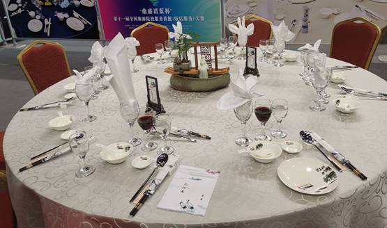 大赛分理论考核、英语口语测试、操作展示三个环节,我校参赛选手在张岩君、闫颖、石峰、邓薇、曹雪稚等五位老师精心指导下,立足我校两校区区位优势,突出本地文化特色,以日照-“海”好有你(西餐宴会摆台)、江南忆(中餐宴会摆台)和曲阜-儒家文化(客房服务)为主题,对三个赛项进行主题化设计,认真准备理论考核和英语口语,勤苦练习操作技能,在笔试、口语测试、操作展示环节取得优异成绩。选手们过硬的专业水平、心理素质和应变能力,获得大赛评委老师们的一致好评。
