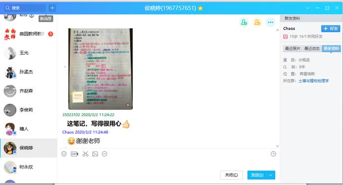 由于新冠疫情,新学期我们采用新的上课方式——线上教学,我的感觉是新鲜又兴奋,这是第一次体验这种上课模式,但是线上教学与线下教学还是有很多不同的,比如老师每次提问都要连麦,还会出现延迟,卡顿,不过我仍然感觉到了老师对每节课都很负责,会时不时间我们有没有听清楚,能不能跟上进度,老师的教学热情,即使是对着屏幕,但跟在讲堂上依然没有差别,因此,我能够学习到许多新知识,虽然老师教的非常认真也非常细致,但是为保证学习效果,课后还是需要要认真复习。