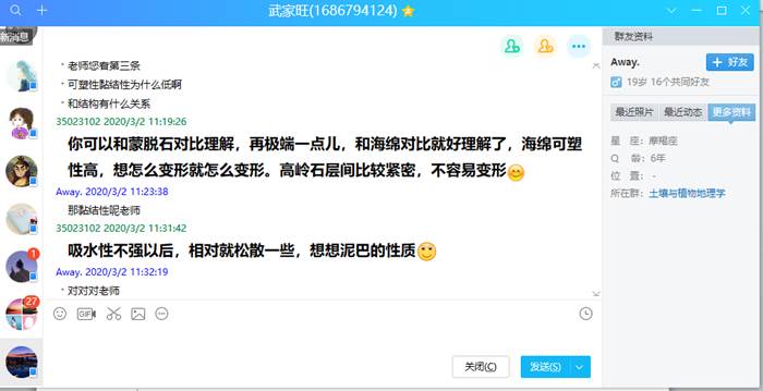 通过这堂课,我学到了很多有关土壤系统组成方面的如识。原来土壤还有这么多的东西是我所不知道的,我收获了很多,老师讲票很生动形象让我对土壤有了更进一步的认识,也让我对这门课产生了浓厚的兴趣。因为疫情,只能通过电子设备来讲解,但却并不感觉枯燥,连线互动也让我感觉很新颖有效。在线答题让我很好的进行思考,在以后的学习中,我会继续认真听课做好笔记,虚心求教.尽自己最大的努力学好这门课。