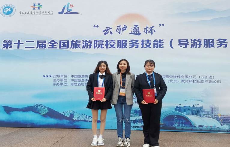 积极组织学生参赛,取得佳绩。其中2019级旅游管理专业郭凤和晏双月同学获外语组三等奖,2020级旅游管理专业陈文欣与张希盼同学分获普通话组三等奖和优胜奖。