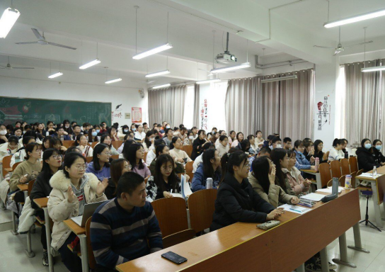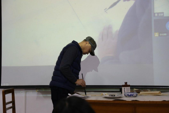 于S103连续举行两场书法培训讲座。此次活动由美术学院指导老师陈英俊主讲,李剑老师、周维国老师、刘庆果老师与2019级全体地理科学专业同学听取了培训讲座。