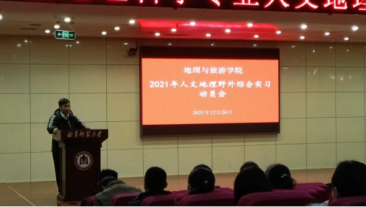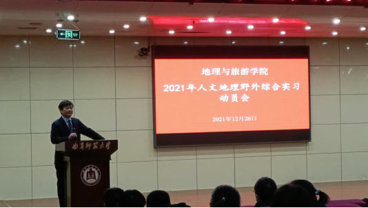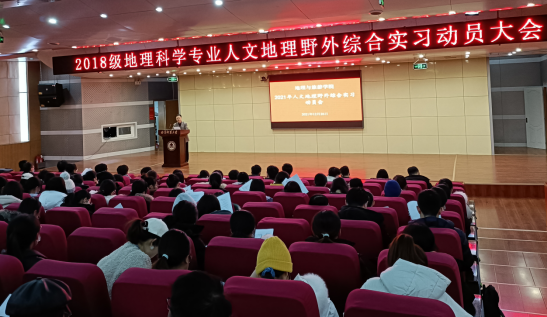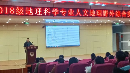 为顺利推进2018级地理科学专业人文地理野外综合实习,12月26日晚,学院在图书馆报告厅召开人文地理野外综合实习动员会。学院党委书记苏占兵、院长张全景、副书记刘伟、副院长吴军以及人文地理教研室张学波、赵林、王宜强、樊立惠等领导和老师出席会议,2018级全体地理科学专业学生参加会议。动员会由学院党委委员刘志刚老师主持。