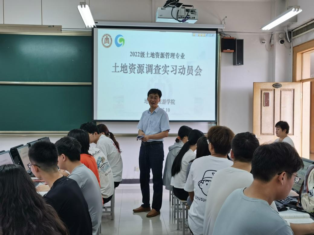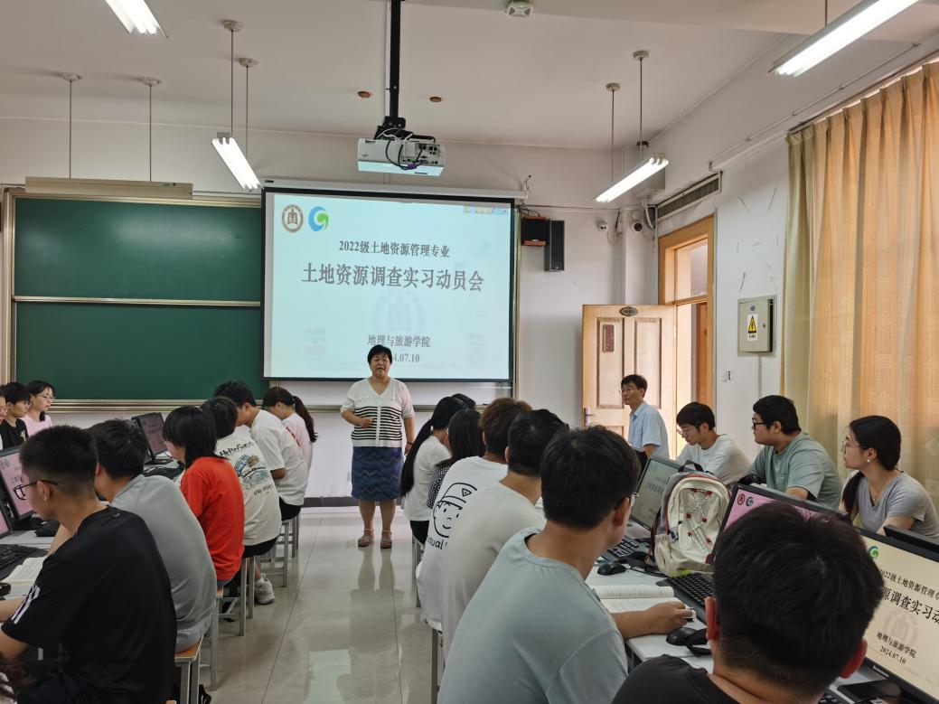 于实验中心SA231实验室召开2022级土地资源管理专业土地资源调查实习动员会。学院副院长吴军,实习指导教师孙丕苓、王萍、王猛、台晓丽出席会议,土地管理系系主任王萍主持会议,2022级土地资源管理专业全体同学参加会议。