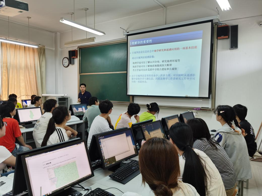 会上,王猛老师详细介绍了目标地物特征以及如何进行目视解译、计算机解译,带领同学们对相关知识进行了复习;孙丕苓老师系统讲解了土地利用现状分类体系。最后,孙丕苓老师从实习计划、课程目标、实习内容、考核要求等方面,具体介绍了实习目的和具体任务,要求同学们实习过程中勤于思考、积极交流、大胆尝试、团结合作,结合内外业调查实习,切实提高自身实践能力,希望同学们把握此次实习机会,认真完成实习报告,提升自己的专业技能,顺利、圆满地完成实习任务。