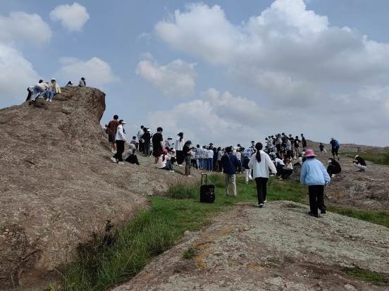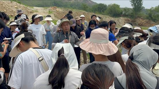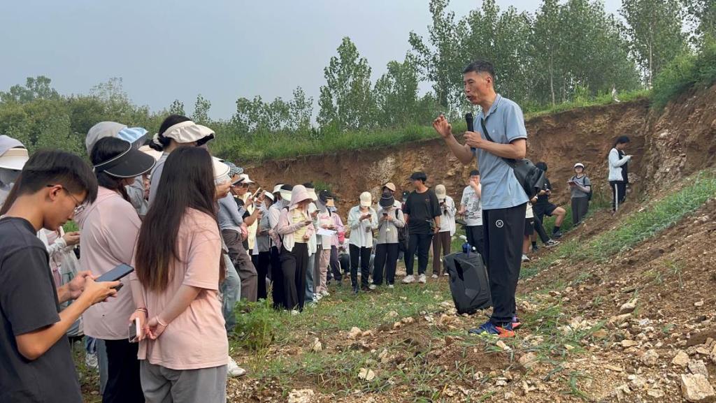7月14日中午,刘飞带领同学们在大哨村采集砂姜黑土,详细阐述了砂姜黑土的成土过程和土壤特性。接着,同学们来到小岱村考察丹霞地貌。赵爽指出,丹霞地貌是由内营力和外营力共同作用形成的地貌类型,他详细介绍了丹霞地貌的成因,丹霞地貌与雅丹地貌的区别,以及如何从岩性、形态等方面识别丹霞地貌。同学们在此过程中,受益匪浅。至此,实习结束,同学们安全有序返回学校。