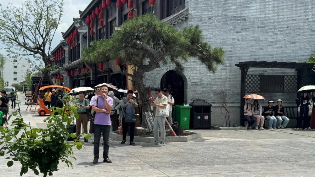 14日下午前往莒国古城参考考察,张全景强调,同学们在进行参观考察时要思考在传承文化的同时应如何搞好旅游发展,引导同学们思考街道两侧商铺收益情况。张学波介绍了莒国古城建设的历史和现实背景,讲解了莒国古城规划建设的主体建筑及其风格特征,指导学生对莒国古城运营的实际情况进行考察并思考。