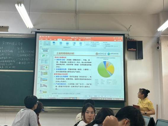 7月2日,同学们于实验中心F楼229实验室开展土地资源调查实习内业工作,主要包括遥感影像目视解译与土地利用类型预判。首先,孙丕苓老师讲解了ArcGIS软件的运用,进行遥感影像目视解译,统计地类面积,制作土地利用现状图,掌握土地利用现状图的编制方法。讲解结束后,同学们团结协作,以小组为单位进行自由探索,对老师布置的任务进行针对性讨论,然后以遥感影像图为底图,对土地利用类型进行了初步的判读与识别。
