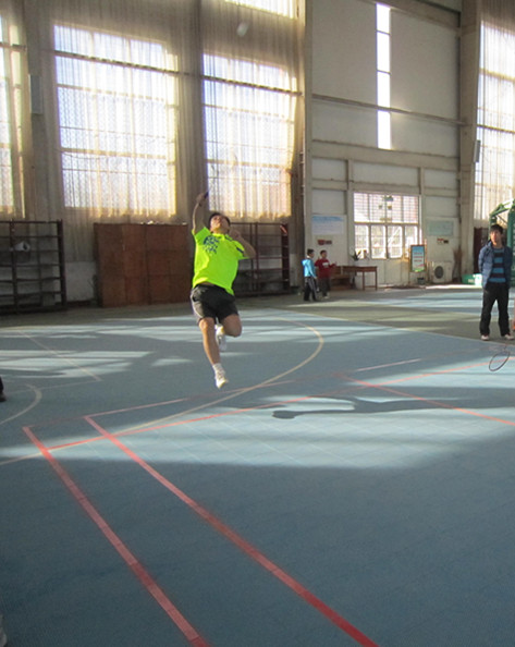 在同学们眼中,石老师高大帅气,学识渊博,幽默风趣,谦和有礼。很少有人知道,球场上的他摇身一变,成为一名热血斗士,英姿飒爽,霸气十足。采访石老师时,石老师显得略不好意思。当谈到他绝妙的扣杀时,石老师微微一笑,“熟能生巧,都是长期锻炼的结果,不过,进步无止境,以后还得勤加锻炼。”纵观各场比赛,石老师灵活自如的扣杀将全场气氛一次次推向高潮。