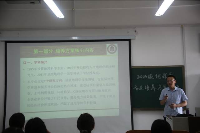 分别召开了2020级地理学专业、学科教学(地理)专业、旅游管理(MTA)专业及职业技术教育(旅游服务)专业研究生培养方案解读会。各专业解读会分别由于伟老师、吕宜平老师、吴军老师、石峰老师讲解,张全景院长、郭付友、王云倩、张瑜、陈艳锋等导师及2020级全体研究生新生参加会议。