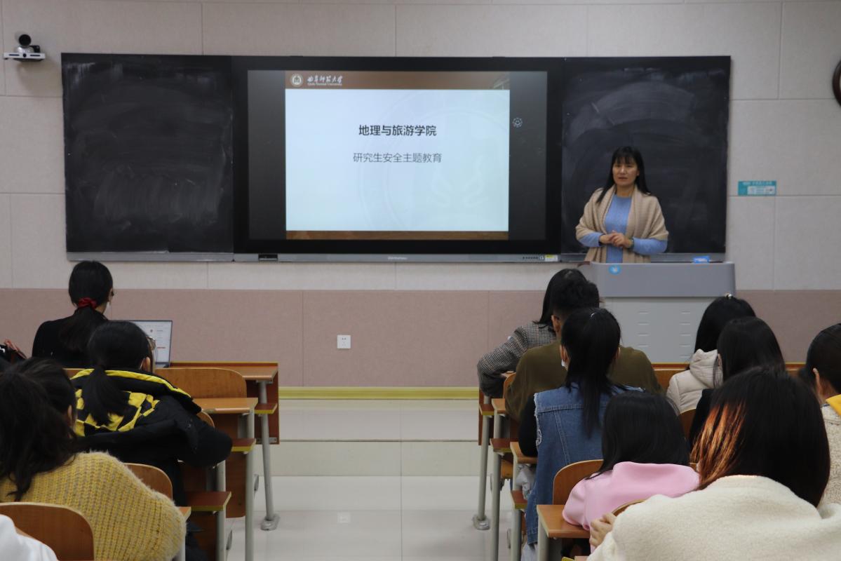 于JS213召开研究生安全教育主题班会。研究生辅导员赵岩给全体研究生上了一堂安全教育课。