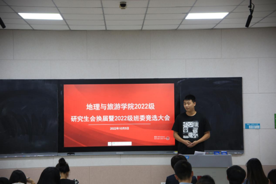 参与竞选的同学根据研究生会换届选举竞选要求,依次上台进行3分钟竞选演讲。竞选环节中,各位参选人员满怀信心和激情,以端庄大方的仪态和饱满的精神状态走上舞台,就自己的基本情况、对工作岗位的认知、竞选原因以及工作设想进行了演讲。随后进行了2022级班委竞选,2022级地理学班、学科教学(地理)班、旅游管理班参与竞选的同学依次上台以PPT、演讲等多样形式,展示自我蓬勃风采。经过班级同学民主测评等环节,最终确定2022级硕士研究生各班班委人员。