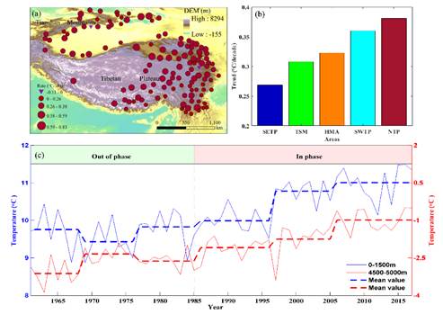 近年来,许多研究表明海拔越高的地区,通常升温越快,这被称为增暖海拔依赖现象(elevation-dependent warming,EDW)。这一现象在国内外诸多高海拔地区得到了验证,例如安第斯山脉,落基山脉,云南高原,美国西部山区等。然而,对于高亚洲地区升温是否存在海拔依赖性却存在争议。一部分学者认为高亚洲增暖具有海拔依赖现象,而另一些学者则认为没有。