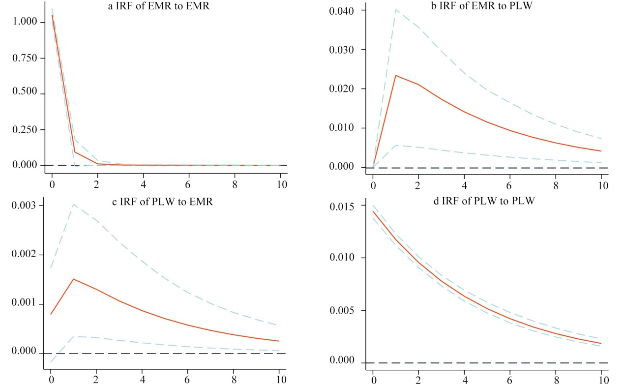 图3 经济韧性与民生福祉之间的脉冲响应特征