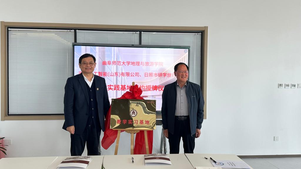 与齐鲁人工智能(山东)有限公司举行共建教学实习基地签约授牌仪式。学院院长张全景、副书记刘伟、副院长吴军、工会主席石峰出席签约仪式并开展访企拓岗活动。日照市人民政府参事、日照市科学技术协会原主席徐立永、日照市委统战部原副部长、民宗局局长周全、山东省研学旅行协会会长张化勇、山东省研学旅行协会执行秘书长马学福、日照市研学旅行协会专家委员会特聘专家秦玉刚出席,仪式由日照市研学旅行协会会长、齐鲁人工智能(山东)有限公司董事长毛宗坤主持。
