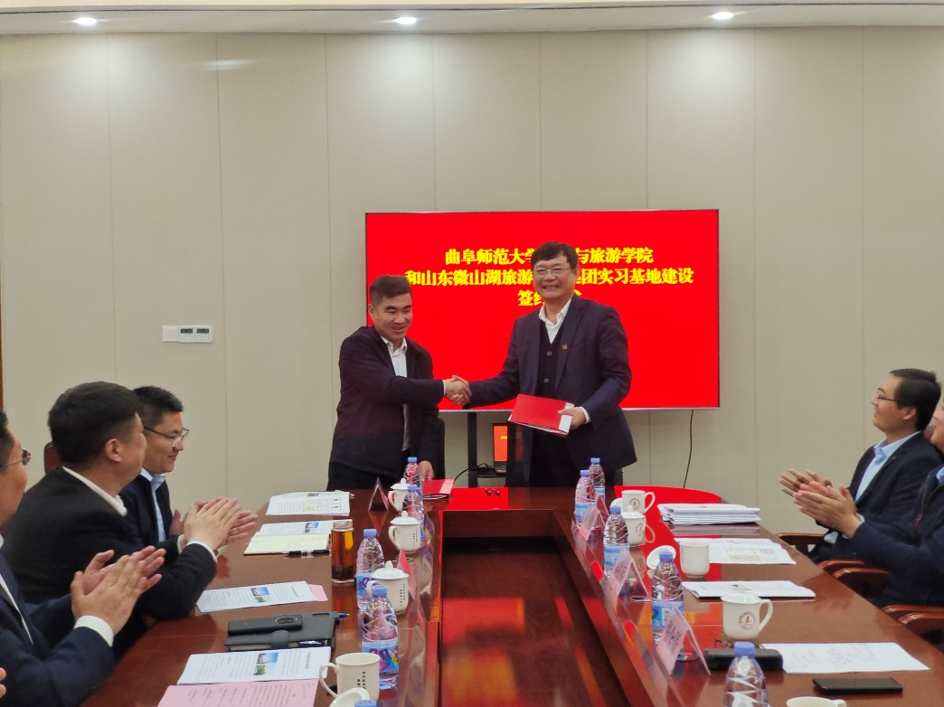 为进一步推进校地融合发展,4月11日,地理与旅游学院与山东微山湖旅游发展集团举行共建教学实习基地签约仪式。学院党委书记苏占兵、院长张全景、副书记刘伟、副院长于伟、院长助理李宝富出席签约仪式。微山岛旅游度假区管理服务中心党组书记朱峰,微山县文旅局党组书记、局长王宁,微山县县委第四巡查组组长彭凡民,微山湖旅游发展集团董事长赵立国,微山县文旅局副局长武传震出席并陪同调研。