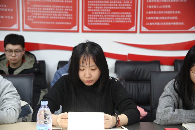 会上,预备党员傅倩倩、夏君、张文静、彭文龙、王晓萌、朱艳冰依次宣读转正申请书并向党组织详细地汇报了预备期内自己在思想、生活、学习、工作等方面的进步,对不足之处做出认真总结,表达了加入中国共产党的坚定决心。随后,入党介绍人孙德健、孙进、马振秀、张宇航分别介绍了六名预备党员的培养考察情况,其他党内同志对以上预备党员能否按期转正进行讨论并充分发表意见。