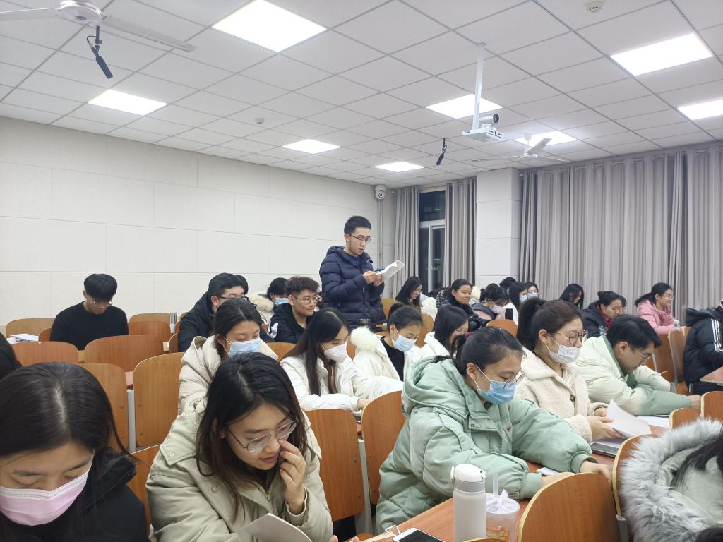 会议前,支部严格执行“第一议题”制度,由田青带领全体党员学习了习近平总书记关于文化的相关论述。习近平总书记强调,弘扬中华优秀传统文化,要处理好继承和创造性发展的关系;要推动中华优秀传统文化创造性转化、创新性发展;自觉利用中华优秀传统文化、革命文化、社会主义先进文化培根铸魂、启智润心,不断提高人文素养和精神境界,做到修身慎行、怀德自重、清廉自守,永葆共产党人的政治本色。与会党员积极研讨交流学习情况。学生党员侯汝栋认为要时刻坚定理想信念,做有底气的新时代青年,做新时代的奋斗者;屈文熙指出,作为一名共产党员,应当走在前列,不怕吃苦,不怕吃亏,不求索取,做好本职工作,不断加强党性修养,提高思想觉悟。