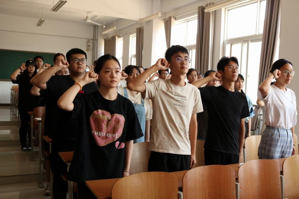 本科生党支部组织开展重温入党誓词主题党日活动。活动由支部书记田青主持,党委副书记刘伟出席,支部全体党员参加。