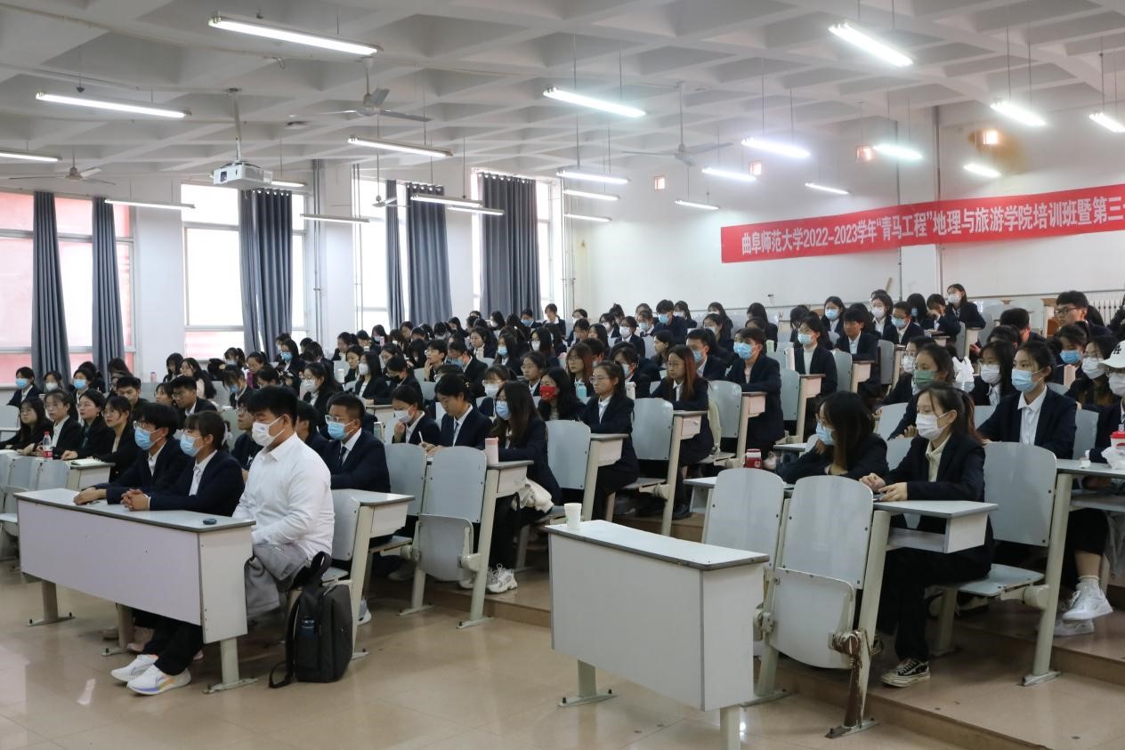 于A105举行2022-2023学年“青马工程”开班仪式。学院党委书记苏占兵为“青马工程”学员宣讲党的二十大精神。