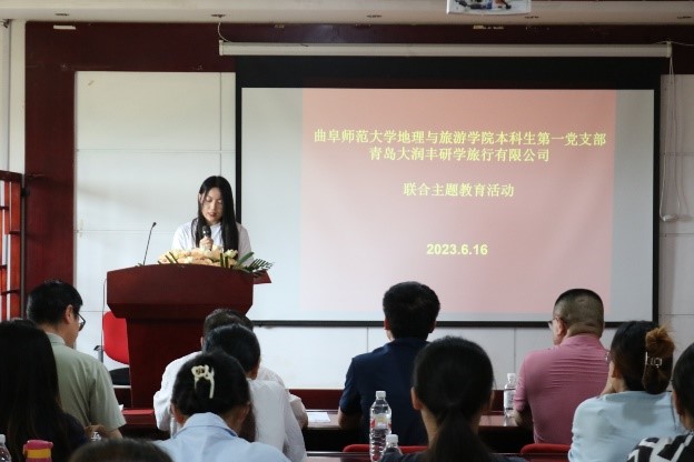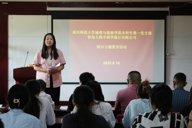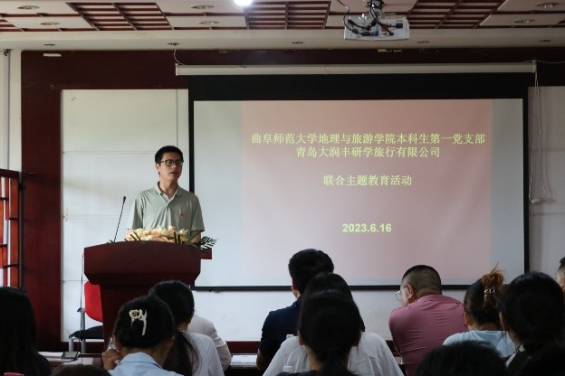 本科生第一党支部赴青岛大润丰研学旅行有限公司,联合开展“青春心向党,筑梦新征程” 主题党日活动。学院党委副书记刘伟、党支部书记田青及大润丰研学公司董事长逢金华等出席活动。