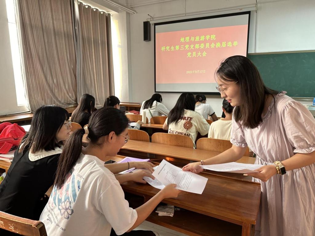 研究生第三党支部于S412召开全体党员大会,开展党支部换届选举工作。会议由徐佳蓓同志主持,全体党员参加。