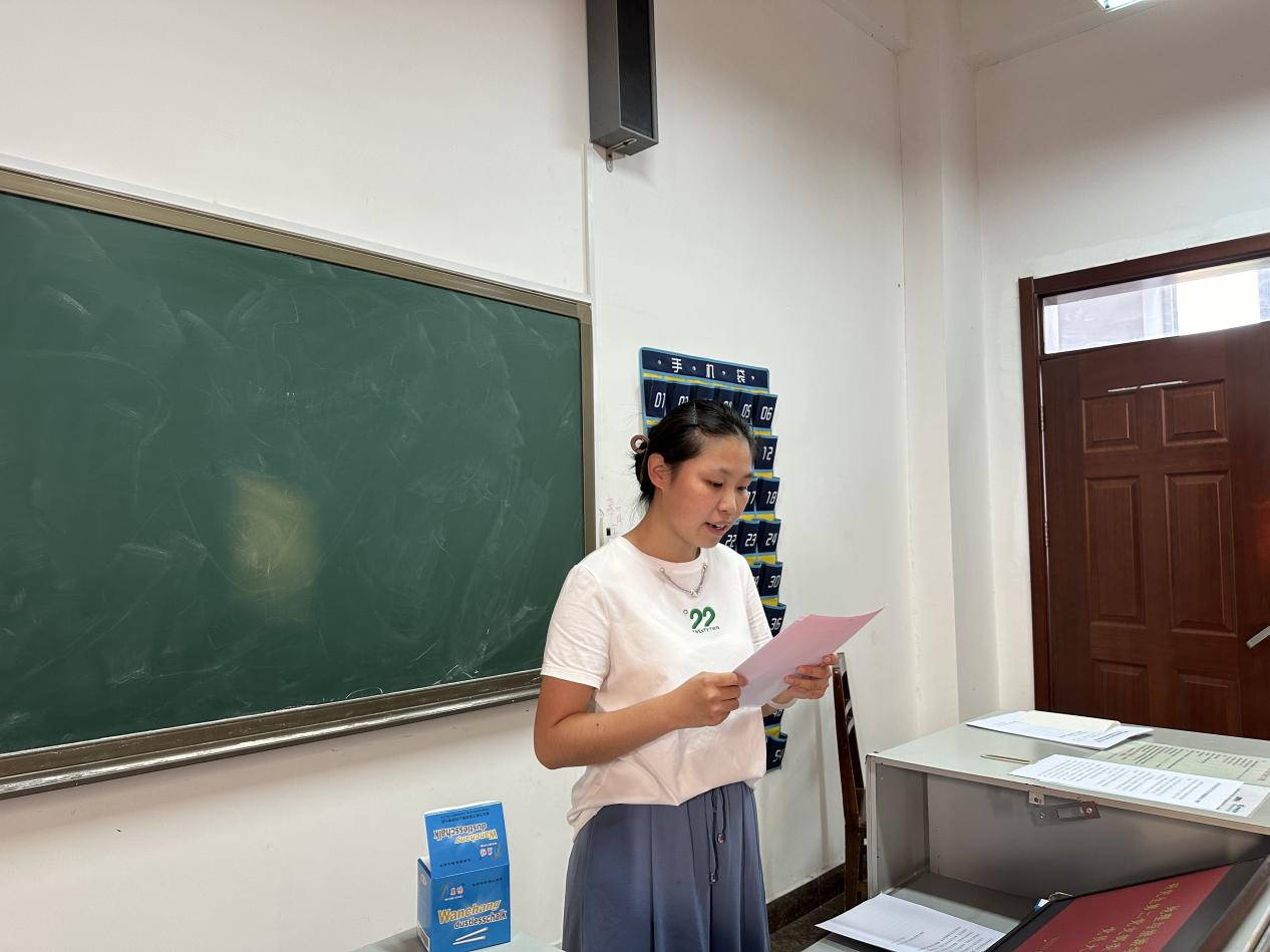 徐佳蓓代表上一届支部委员会向大会作工作报告,全面回顾总结党支部的工作情况及取得的成效。随后根据选举流程,徐佳蓓向大会汇报了支部委员会委员候选人、大会监票人和计票人的酝酿产生情况。随后大会审议并通过了选举办法和监票人。经党支部全体正式党员对委员候选人无记名投票,选举徐佳蓓、张欣宜、李雅洁三位同志为党支部委员。