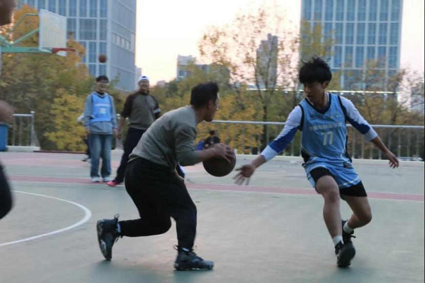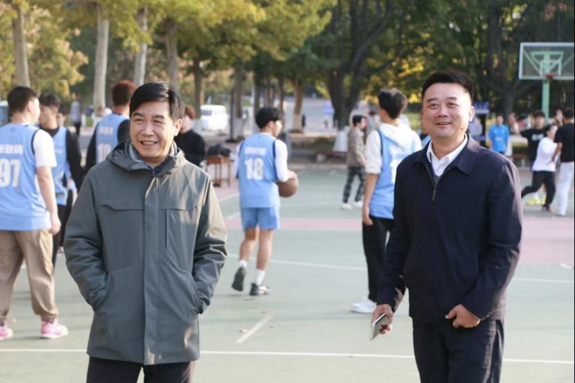 为丰富学生课余文体生活、增强师生间的情感联结,10月23日,我院于西操篮球场举办师生联谊篮球赛。本次活动由团委学生会体育部承办,贺山峰、郭付友、于深洋、王伟、贾子康、陈艳峰、杨雨蒙组成教师代表队,与学生代表队同场竞技,党委书记苏占兵、党委副书记刘伟及工会主席石峰与现场师生共同观看比赛。