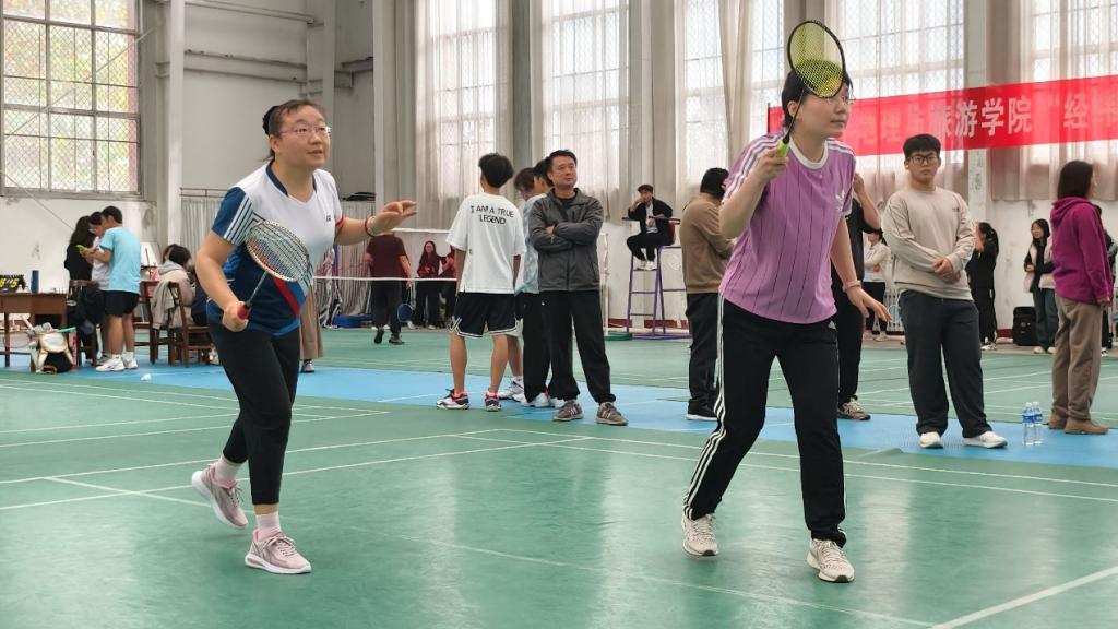 比赛分为小组赛和排名赛两个阶段,比赛项目包括男子双打、女子双打和混合双打三项,每场比赛均采取三局两胜制。赛场上,运动员们个个精神饱满,动作敏捷,精彩的扣杀、巧妙的挑球和精准的落点引发现场观众阵阵掌声。场外,队友们组成的啦啦队也为比赛增添了热烈的气氛,加油声、欢呼声不断,整个体育馆充满了欢乐与激情。