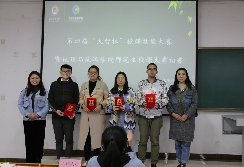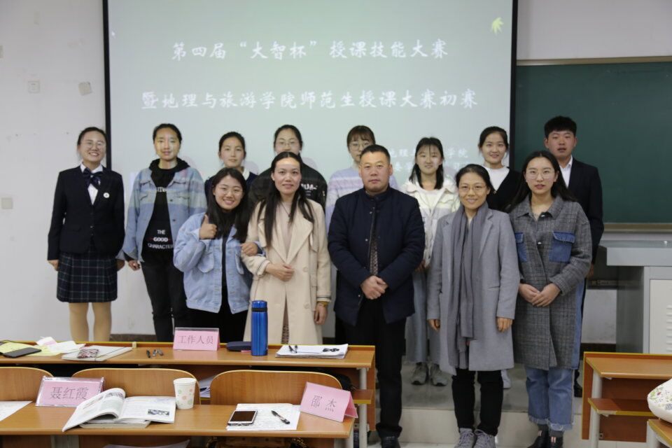 团委学生会主办,学习部承办,特邀谭丽荣、李剑、刘飞三位老师和曾获得山东省教学技能大赛一等奖的邵杰、聂红霞担任评委,2016级部分师范生参赛,2017级、2018级地理科学专业学生参加。
