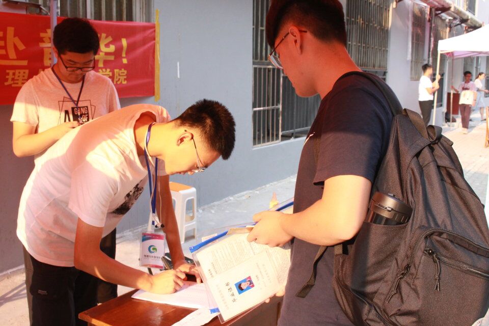 全体老师和学生干部严阵以待,力求效率,为新生提供细致周到的服务。