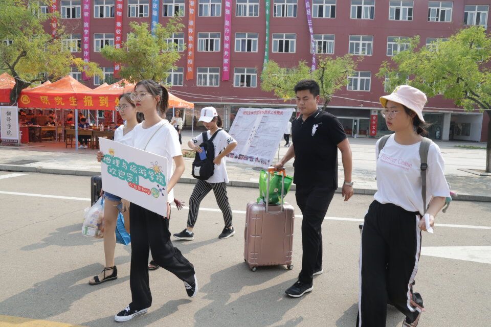 、荣耀地理、以及考研、考博光荣榜等,让家长和同学们对学院有初步的认识,激励新生认真学习,学有所成。同时,报到大本营处工作人员专人专岗、分工细致,工作有序高效的进行,报到处后方设立家长休息区,并安排专门的同学服务家长。宿舍园区内,学生会成员为新生登记住宿信息,搬被褥、脸盆等生活用品,分发宿舍工具,细心解答新生关于宿舍园区水卡、洗衣卡办理的疑问。在两天的迎新时间内,学生会的每位成员都始终如一的坚守岗位、尽职尽责的完成每份任务,毫不懈怠,给予新生家人般的温暖。