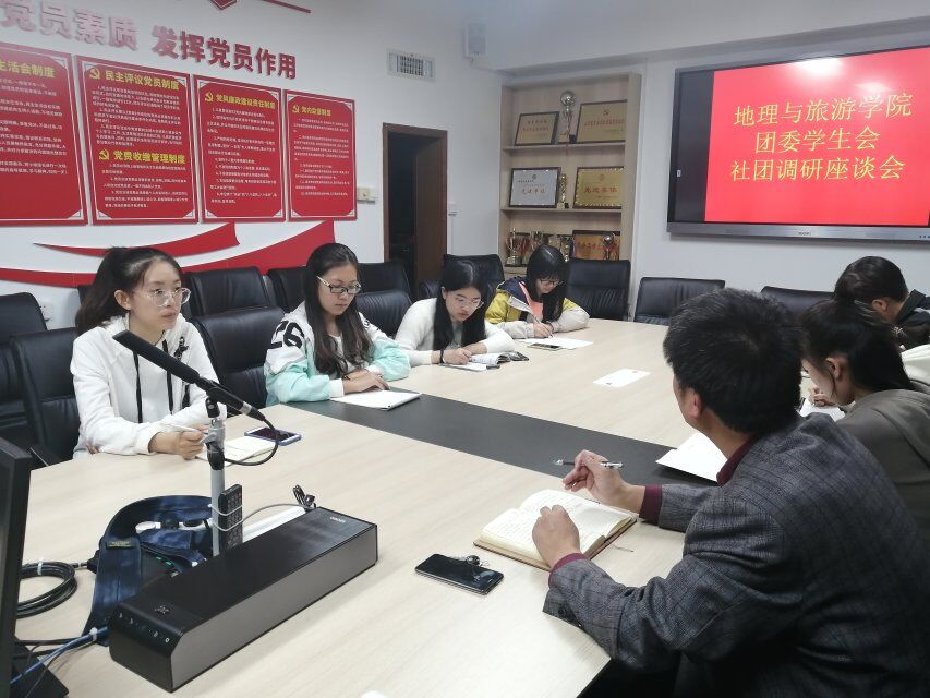 团委学生会社团调研座谈会于会馆2401举行。学院党委副书记刘伟出席,团委学生会副主席郝孟尧、祝锐及各学生社团负责人参加。