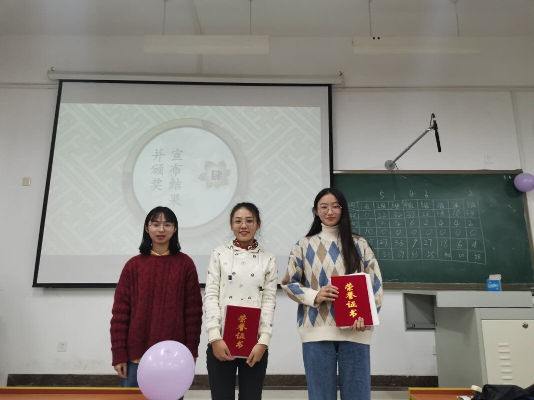 精彩的文艺表演过后,紧接着是下半场比赛。最后半场比赛中,选手们积极抢答,各显神通,比赛达到高潮阶段。欣赏完由李佳霖、纪王迪、陈照齐演唱的歌曲后,比赛的最终结果揭晓。宋婉昕、尼佳美、李谣、黄雪帆获一等奖,宋超、武星华、王禛、吴叶涵、孙汇颖、孙雨琦、孔丽君、马俊敏获二等奖,王子文、荣亚楠、王春雪、孙月妍、黄超、郭梦雨、高云娜、冯路瑶获三等奖,并由评委为获奖选手颁发奖品和证书。