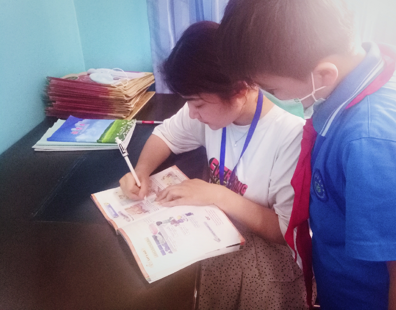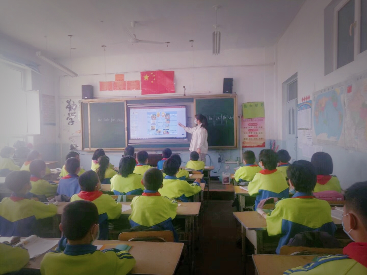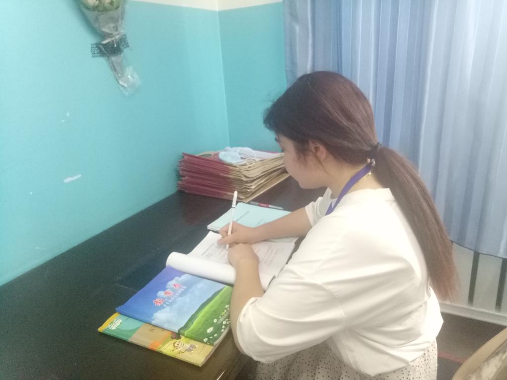 早上北京时间7:30起来(新疆时间5:30)。准备好后,骑上我的电动车向学校出发。8:20刷脸打卡并测体温进入校门,到了办公室开始批改作业。两个班的作业每天按时布置,按时发放。