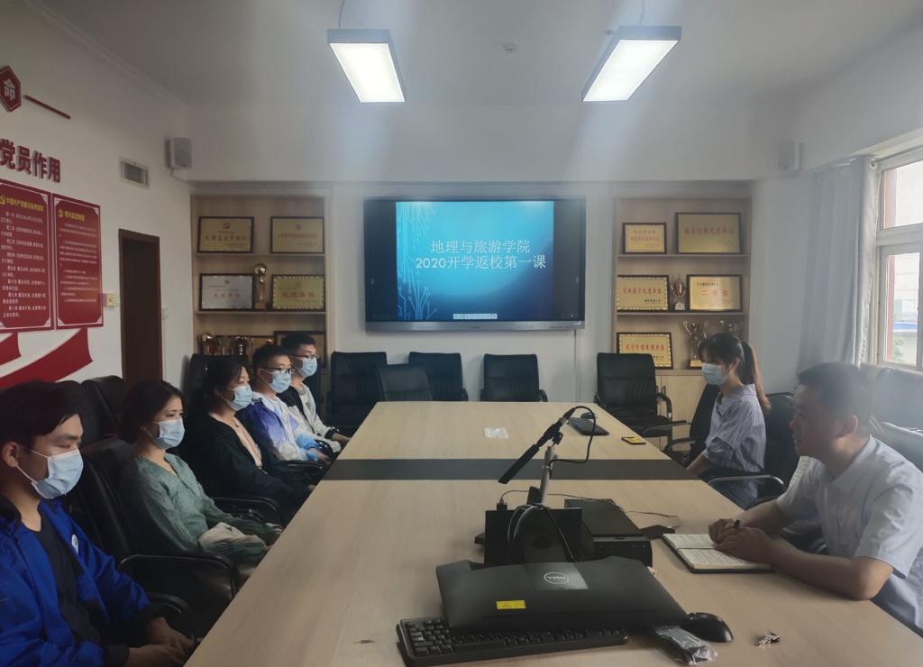 党委副书记刘伟主持并担任主讲人,2017级辅导员董青出席,首批返校的7名学生代表参加。