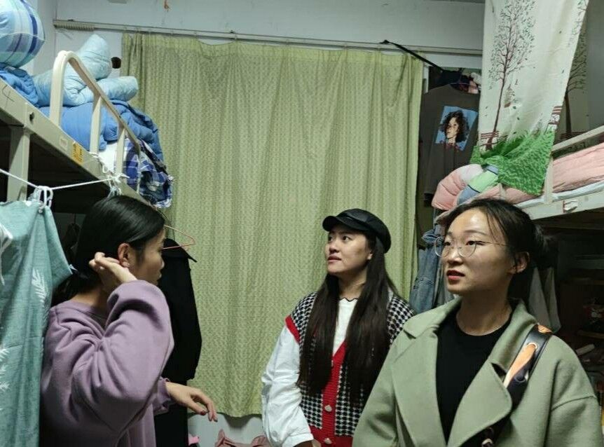 党委副书记刘伟,2017级辅导员董青,2020级辅导员田青、张乃宁,2020届团委学生会主席团、宿舍管理部全体成员对文泽园、四季花园、东升园的四个年级的所有宿舍安全情况进行统一检查。