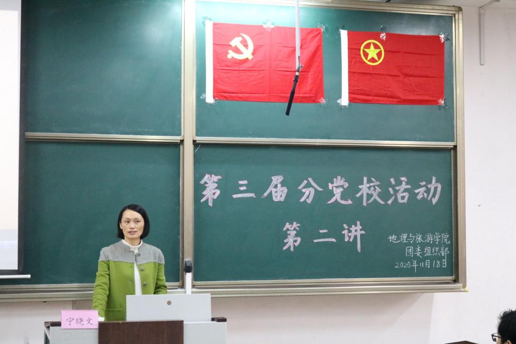 于E204举行第三届分党校第二讲。本科生党支部书记宁晓文主讲,2020级辅导员田青主持,2018级、2019级入党积极分子及2020级积极向党组织靠拢的同学参加。