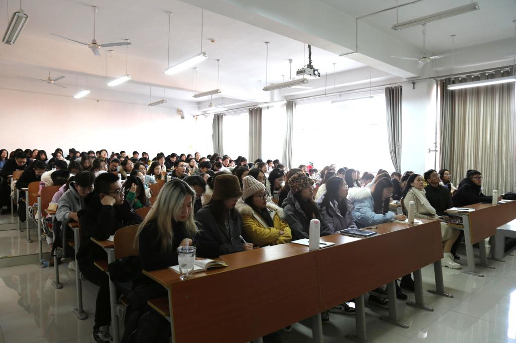 在本次书法讲座中,陈老师向同学们展示了古代书法家的优秀作品,讲解书法的演变历史,并以此为切入点,重点讲解中国传统书法字的结构和规律,指出书写时要注重快慢结合的技巧,停笔顿笔错落有致,笔画轻重讲究和谐;详细讲解了字形笔画结构等,使同学们对毛笔书写有了更深一步的了解,感受到中国传统书法艺术的博大精深。