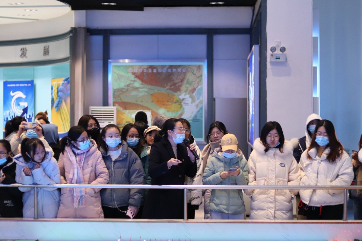 最后同学们来到了日照港展览馆。日照港展览馆是国内首座港口展览馆,于2005年2月份开工建设,8月份正式对外开放。 展览馆为四层钢结构建筑,设有四个展厅和休闲平台,占地面积5108平方米。展厅分为“现代港口、党建专栏、历史回顾、改革开放”四部分,收藏展出了日照港开港以来大量的珍贵文献、图片、资料和实物,同时采用精心制作的港口沙盘模型,多角度全方位集中展示日照港的过去、现在和未来发展前景。日照港口气势恢宏的繁忙作业场景,跻身全国十大港口行列的骄人业绩,均在港口展览馆得到淋漓尽致的展现。