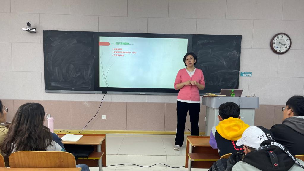 主题班会上,各位辅导员着重讲解了清明假期离校申请和请假、疫情防控、校园安全以及学院四级信息反馈机制相关事宜。各位辅导员根据各年级的成长规律和具体特点,分别提出有针对性的指导意见。董青嘱咐考研同学们收到拟录取消息后,第一时间将录取学校、专业、分数等信息发老师,以便于学院及时提供相关指导。宁晓文强调实习同学要注意安全,抓住机会努力锻炼自己教学能力,高质量完成教育实习任务。李梅对本学期工作计划展开详细讲述,从本校活动至校外比赛,再到考研相关内容,为2019级学生提供相关参考以及形势分析,使学生对未来有更加清晰的规划。田青详细分析上学期的考试成绩,给出学习建议,引导学生以更大的热情积极学习,明白学习的重要性。