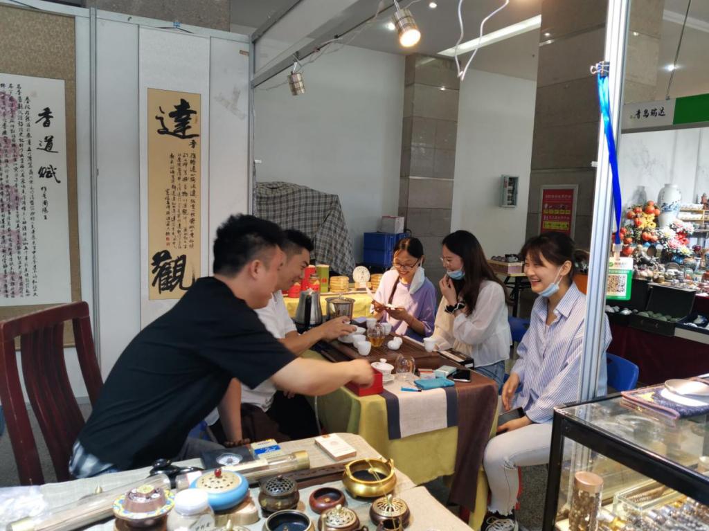 本次实践调研中,张瑜邀请本届茶博会主办方李霞经理和日照市会展协会张皓然老师为同学们进行详细地讲解。实践活动伊始,李经理对同学们的到来表示热烈的欢迎,并就本届茶博会的展会形式、展会内容、展位大小、展位材质,以及部分展位产品等具体内容进行着重介绍。随后,张瑜就新冠肺炎疫情对线下会展的影响、日照市近年来会展发展情况,以及茶博会发展趋势进行细致地分析,并表示愿意为同学们提供更多参展参会的机会。