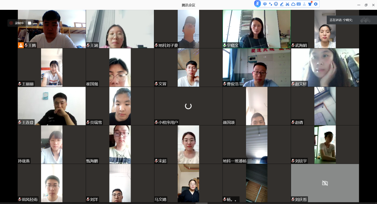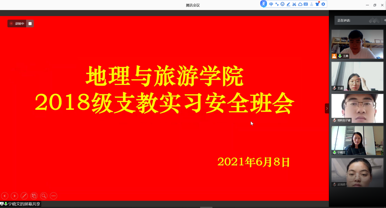 召开支教实习安全班会。班会采用腾讯会议方式进行,团委书记宁晓文主持会议,支教实习同学全员参会。