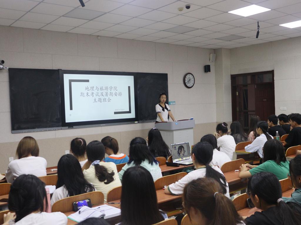 会上,两位辅导员老师宣读考试纪律文件,再次强调考试纪律的具体要求和违反规定的各项处理办法;要求同学们端正思想,积极向上,诚信考试,展示过硬的学业水平和道德水准,用真实的成绩证明自己的实力;号召学生干部以身作则,树立好榜样,积极带领同学们认真复习,努力备考,诚信应考。主题班会详细安排了暑期安全及相关事宜,要求同学们要强化安全意识,增强防范和化解风险能力;要认真填写暑期离校汇总表,严格落实请销假制度,做到联络畅通、行程可控、安全出行。会上,还宣读了《致地理学子的一封信》,引导同学们合理反映各项诉求,各方合力及时高效解决学生实际困难。